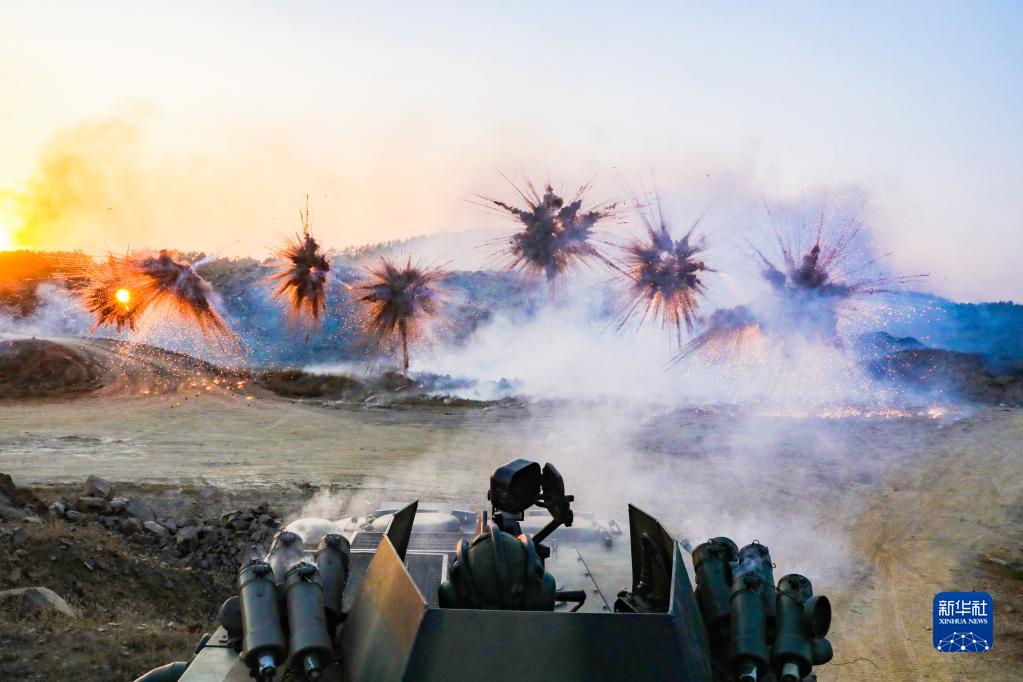 陸軍第72集團(tuán)軍某旅組織某型輪式裝甲輸送車(chē)進(jìn)行車(chē)載煙幕實(shí)彈射擊訓(xùn)練(2021年1月4日攝)。新華社發(fā)(張毛 攝)