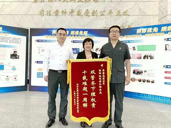 2021年5月,物業(yè)公司向棗營北里社區(qū)、朝陽區(qū)法院酒仙橋人民法庭贈送錦旗。
