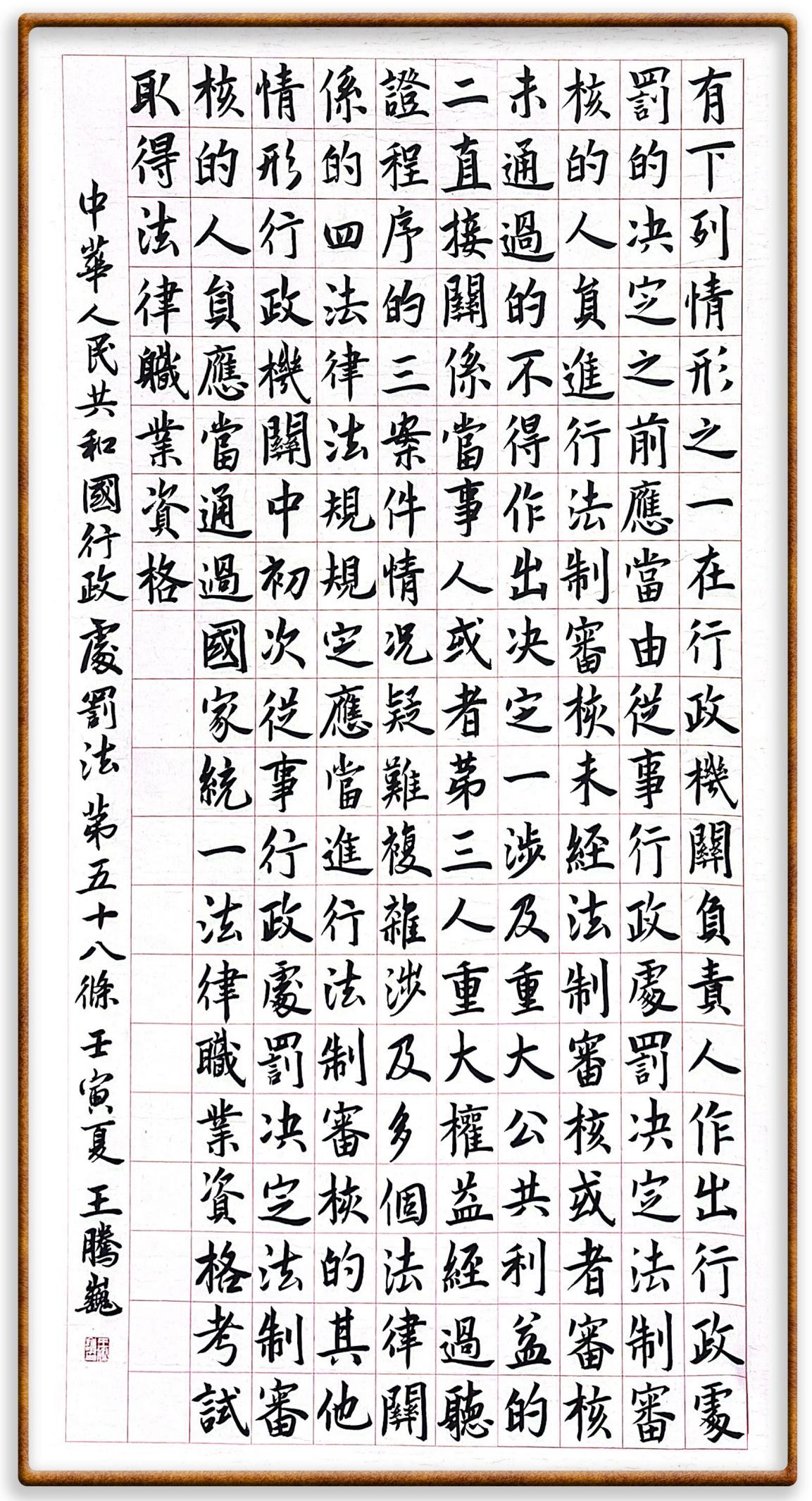 繼《中華人民共和國民法典》《中華人民共和國土地管理法》《中華人民共和國土地管理法實(shí)施條例》《中華人民共和國法律援助法》之后,法治日?qǐng)?bào)社聯(lián)合北京市司法局、北京書法家協(xié)會(huì),將筆端對(duì)準(zhǔn)《中華人民共和國憲法》和《中華人民共和國行政處罰法》。