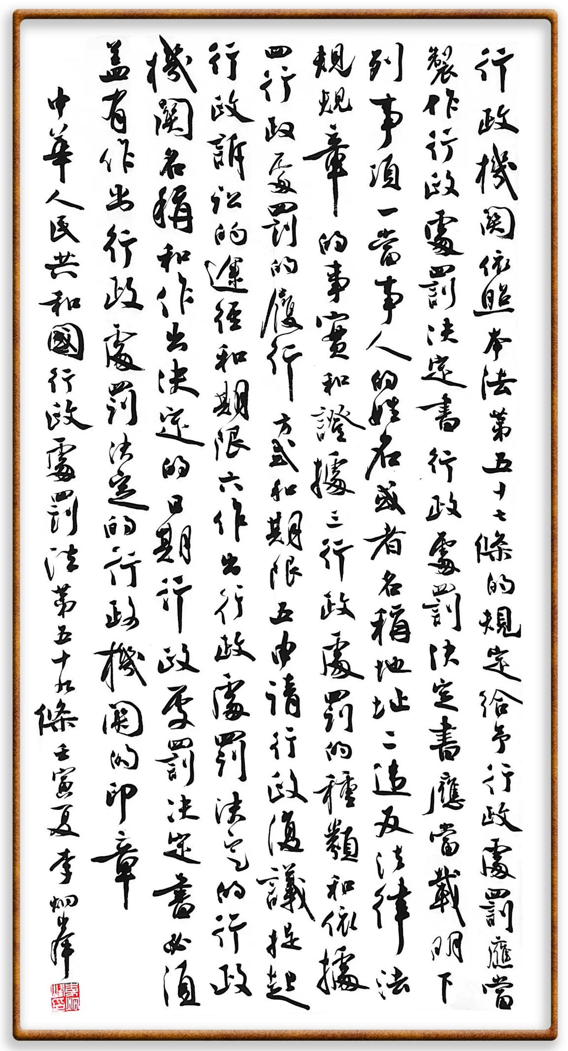 繼《中華人民共和國(guó)民法典》《中華人民共和國(guó)土地管理法》《中華人民共和國(guó)土地管理法實(shí)施條例》《中華人民共和國(guó)法律援助法》之后,法治日?qǐng)?bào)社聯(lián)合北京市司法局、北京書(shū)法家協(xié)會(huì),將筆端對(duì)準(zhǔn)《中華人民共和國(guó)憲法》和《中華人民共和國(guó)行政處罰法》。
