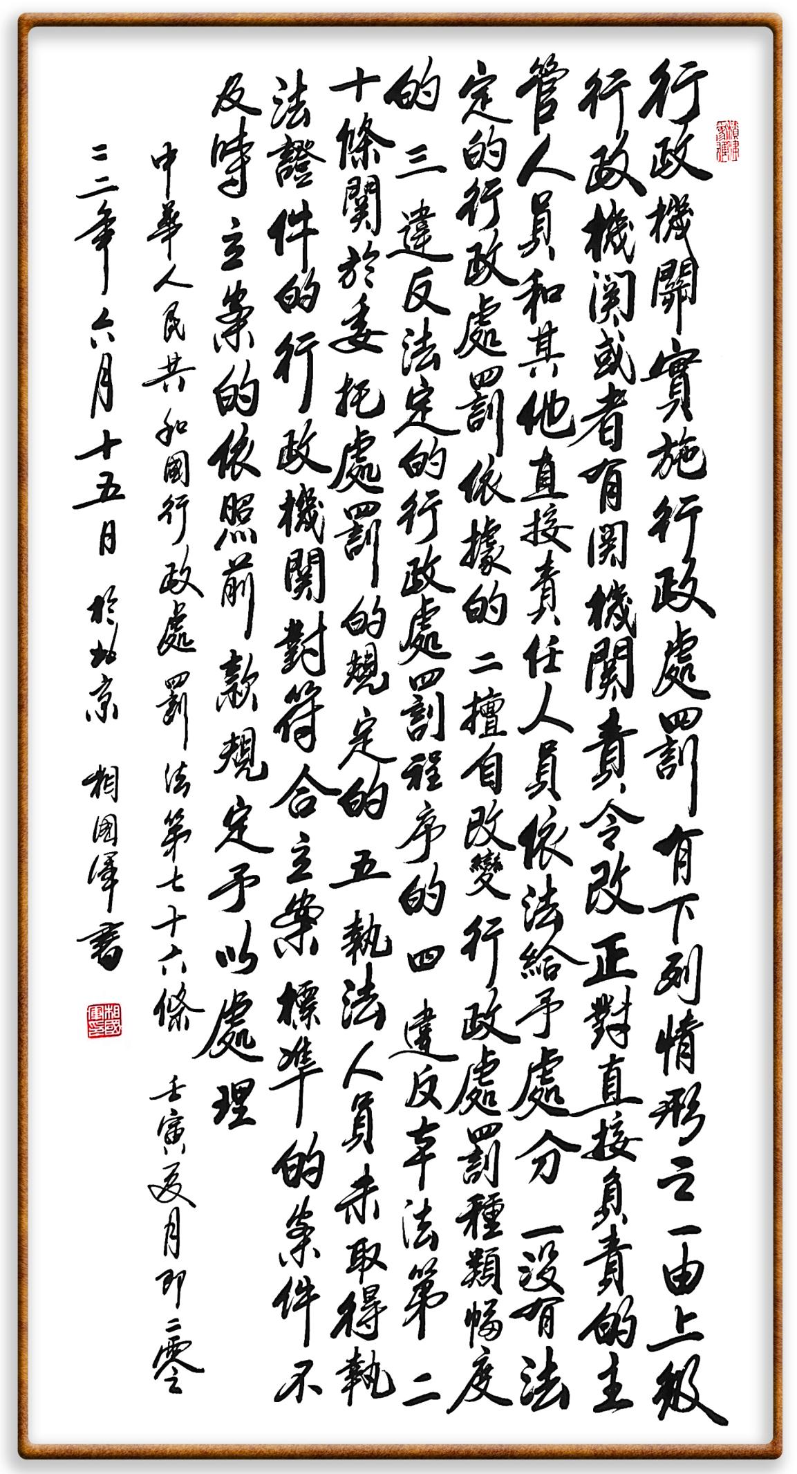 繼《中華人民共和國(guó)民法典》《中華人民共和國(guó)土地管理法》《中華人民共和國(guó)土地管理法實(shí)施條例》《中華人民共和國(guó)法律援助法》之后,法治日?qǐng)?bào)社聯(lián)合北京市司法局、北京書法家協(xié)會(huì),將筆端對(duì)準(zhǔn)《中華人民共和國(guó)憲法》和《中華人民共和國(guó)行政處罰法》。