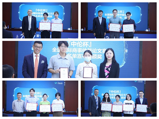 隨后進(jìn)行了第十屆“中倫杯”國際商事仲裁征文頒獎(jiǎng)儀式,中國政法大學(xué)宋連斌教授代表組委會(huì)宣讀了獲獎(jiǎng)名單,獲獎(jiǎng)代表上臺(tái)領(lǐng)獎(jiǎng)并與頒獎(jiǎng)嘉賓合影留念。