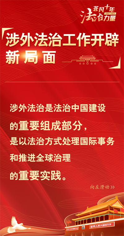 法治網(wǎng)精心策劃制作十期海報,帶您一起領(lǐng)略非凡十年的法治力量!今天為您奉上第八期“涉外法治工作開辟新局面”。