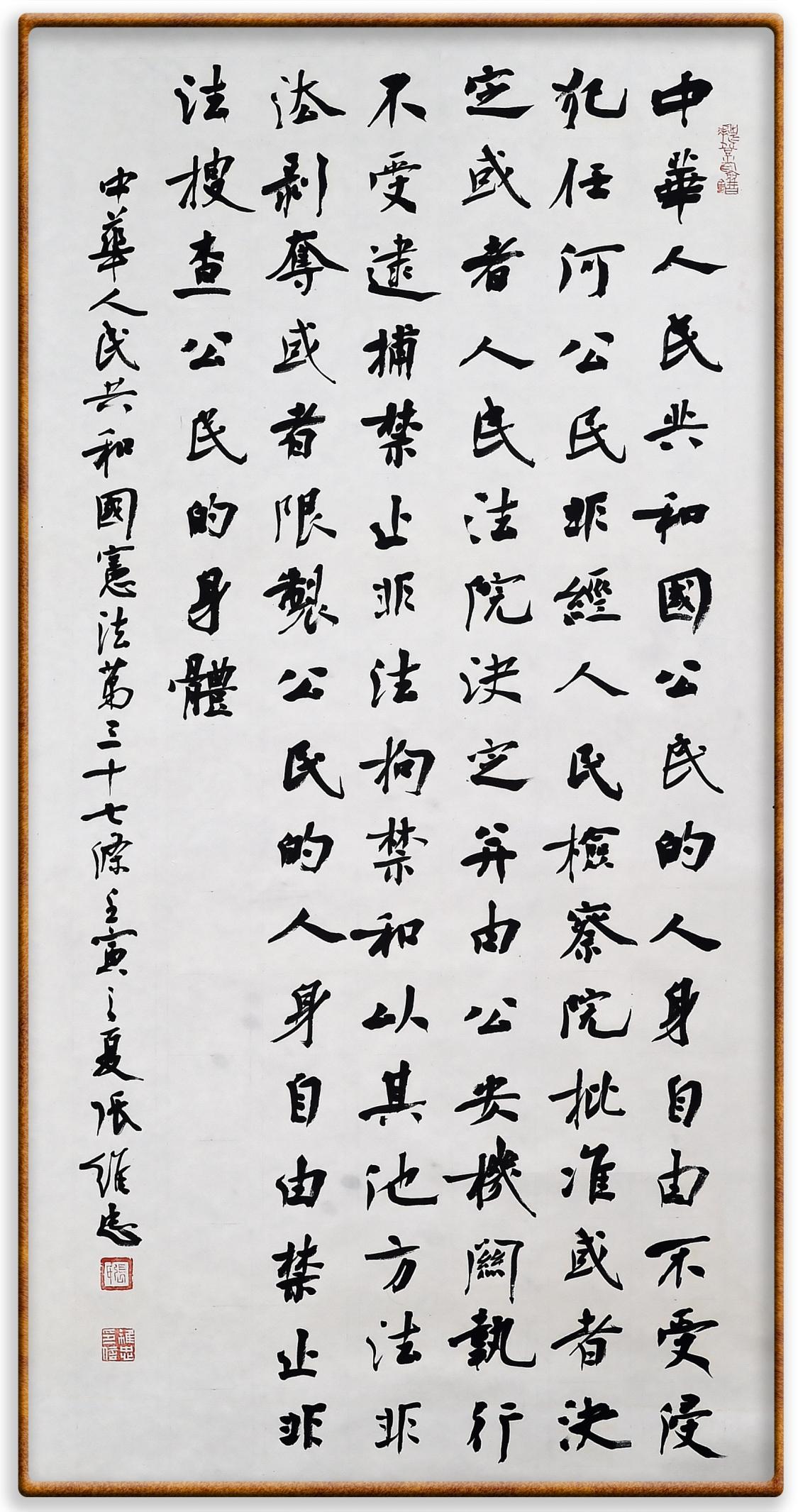 繼《中華人民共和國(guó)民法典》《中華人民共和國(guó)土地管理法》《中華人民共和國(guó)土地管理法實(shí)施條例》《中華人民共和國(guó)法律援助法》之后,法治日?qǐng)?bào)社聯(lián)合北京市司法局、北京書(shū)法家協(xié)會(huì),將筆端對(duì)準(zhǔn)《中華人民共和國(guó)憲法》和《中華人民共和國(guó)行政處罰法》。